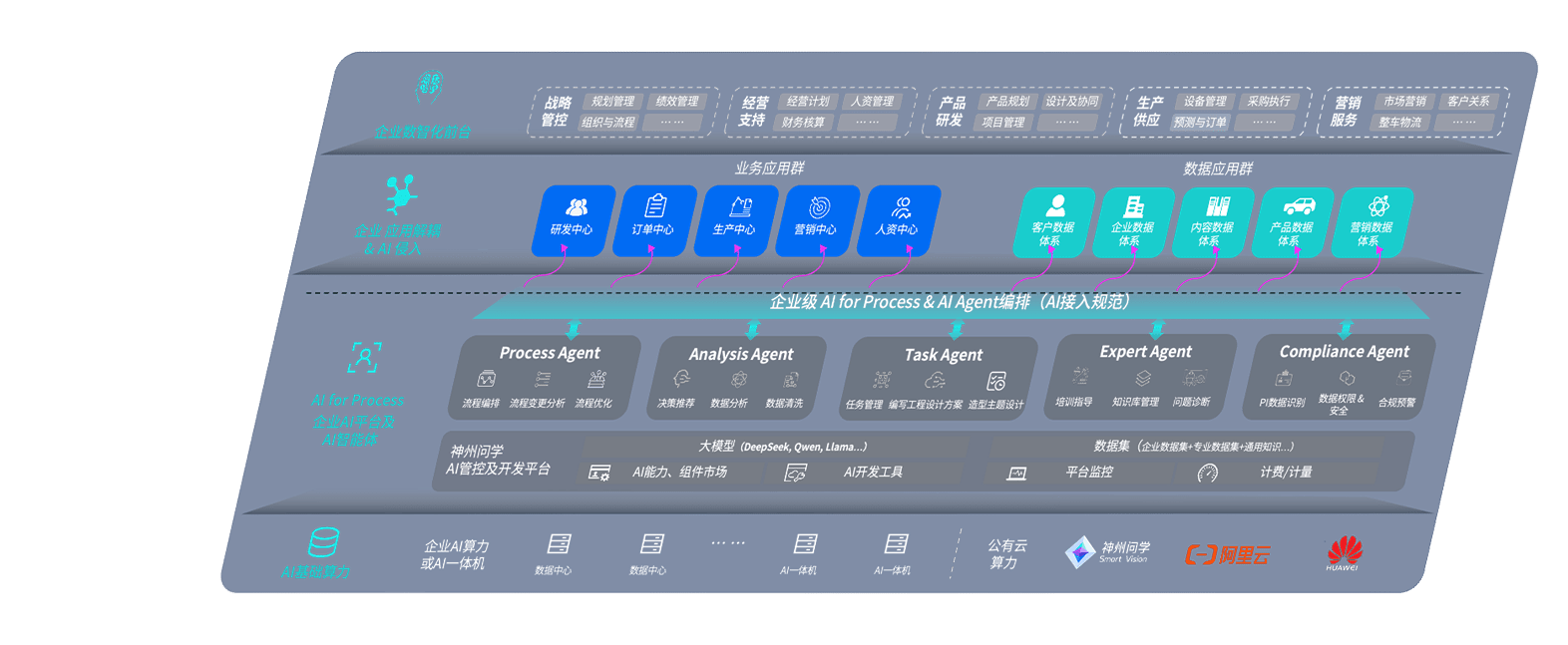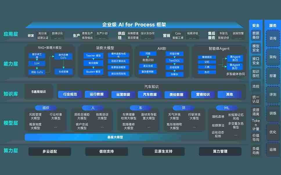 端到端的一站式AI工作空间深度融合了从企业战略规划到日常经营的全流程业务板块,,定向解决车企内部领域多、、部门多、、、链条长、、场景碎片化等难题,,支持车企快速构建以AI为核心的生产力写作体系,,,,实现任务执行与AI能力的无缝集成与交互
